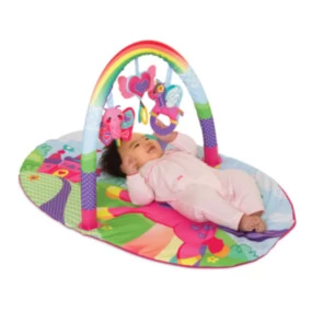 Infantino Podloga za igru odlična je za gimnastiku bebe - šarene igračke podstiču udaranje, hvatanje, šutiranje i dosezanje bebe. Podloga je mekana, lako se čisti i sklapa. Poseduje ručku, pa se može i lako nositi. Podloga za igru jarkih boja sastoji se od tri različite igračkice koje su okačene na nju.