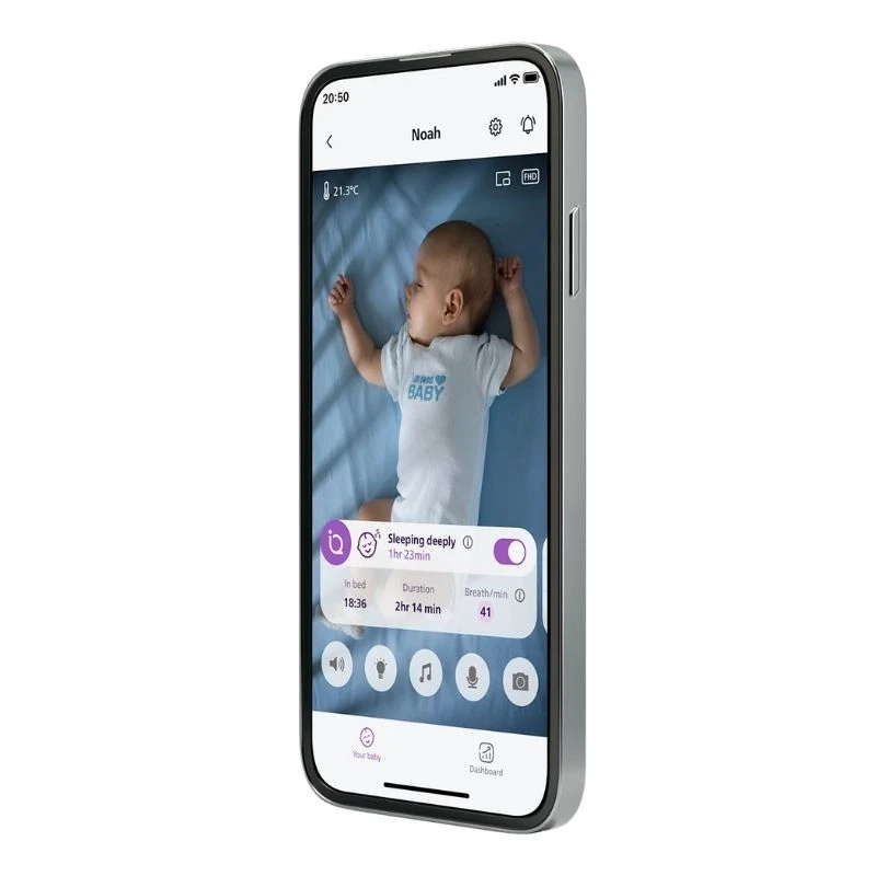 - Trenutno pratite status spavanja i brzinu disanja bebe. Naša tehnologija analizira milione piksela u sekundi kako bi detektovala čak i najsitnije pokrete, prenoseći vam podatke u realnom vremenu. Veća bezbrižnost za vas, veća udobnost za bebu!