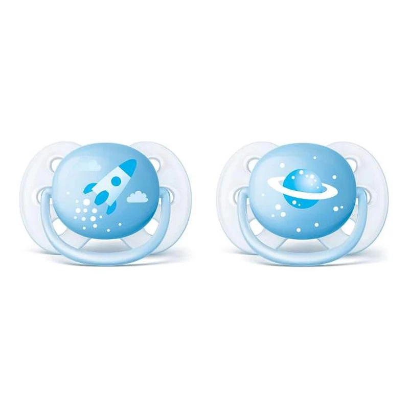 Avent Soothie varalica za bebe Boy predviđena je za bebe od rođenja do 6 meseci. Philips Avent Soothie je dizajniran na osnovu prirodnih kontura lica vaše bebe. Njegov zakrivljeni štit u obliku srca neće udariti u njegov ili njen sićušni nosić. Napravljen od medicinskog silikona, Soothie se distribuira u bolnicama širom Evrope.