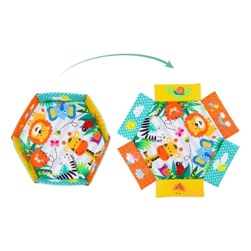 - Faza aktivne igre u bazenu: Podizanjem mrežastih stranica, podloga postaje siguran bazen. Ubacite 30 šarenih loptica koje dolaze u setu i posmatrajte kako se vaš mališan zabavlja u sopstvenom malom igralištu.