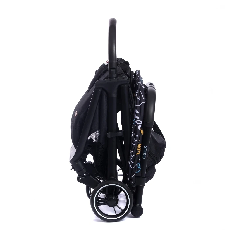 - Kolica se sama sklapaju pritiskanjem sigurnosnog mehanizma (Brzo sklapanje)