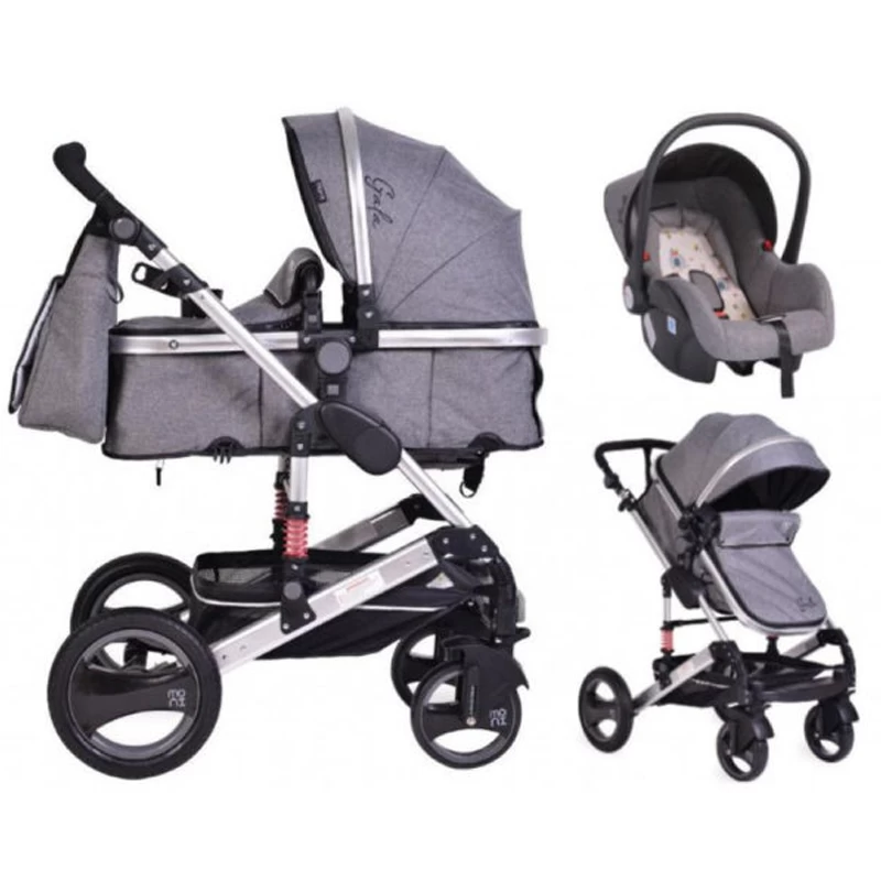 Cangaroo kolica Thira u sivoj boji će Vas inpresionirati svojim originalnim dizajnom i pružiti komfort Vašem mališanu. Predviđena su za bebe od rođena do navršene 4 godine odnosno do 22kg. Za veći komfort deteta sedište se može podesiti u željeni položaj i vrlo lako i brzo transformisati u kolevku za novorođenče. Pojasevi se mogu vezivati u 5 tačaka sa mekim jastucima zaštitiće Vašeg mališana, mekana topla navlaka će ga zaštiti od hladnoće i vetra. Kolica takođe imaju reflektujuće trake za sigurnost prilikom kretanja. Zahvaljujući velikoj, podesivoj tendi beba će biti zaštićena i u toplim mesecima.