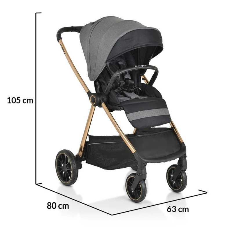 Cangaroo kolica Thira u sivoj boji će Vas inpresionirati svojim originalnim dizajnom i pružiti komfort Vašem mališanu. Predviđena su za bebe od rođena do navršene 4 godine odnosno do 22kg. Za veći komfort deteta sedište se može podesiti u željeni položaj i vrlo lako i brzo transformisati u kolevku za novorođenče. Pojasevi se mogu vezivati u 5 tačaka sa mekim jastucima zaštitiće Vašeg mališana, mekana topla navlaka će ga zaštiti od hladnoće i vetra. Kolica takođe imaju reflektujuće trake za sigurnost prilikom kretanja. Zahvaljujući velikoj, podesivoj tendi beba će biti zaštićena i u toplim mesecima.