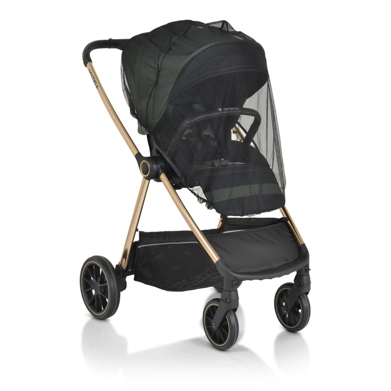 Cangaroo kolica Thira u zelenoj boji će Vas inpresionirati svojim originalnim dizajnom i pružiti komfort Vašem mališanu. Predviđena su za bebe od rođena do navršene 4 godine odnosno do 22kg. Za veći komfort deteta sedište se može podesiti u željeni položaj i vrlo lako i brzo transformisati u kolevku za novorođenče. Pojasevi se mogu vezivati u 5 tačaka sa mekim jastucima zaštitiće Vašeg mališana, mekana topla navlaka će ga zaštiti od hladnoće i vetra. Kolica takođe imaju reflektujuće trake za sigurnost prilikom kretanja. Zahvaljujući velikoj, podesivoj tendi beba će biti zaštićena i u toplim mesecima.