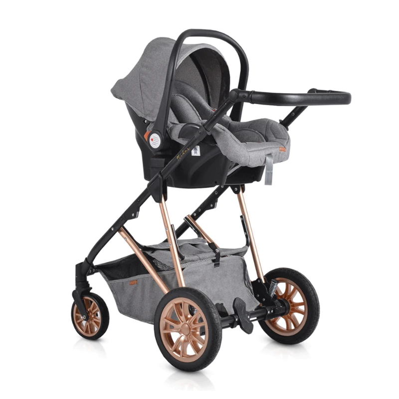 - Kolica sadrže nekoliko dodatnih dodataka za maksimalnu negu vaše bebe: okvir, korpa za novorođenče, koja se pretvara u sedište. Sigurnosni pojas sa 5 tačaka sa mekim jastučićima, dečije auto sedište, velika korpa za prtljag, 2 jastučića za sedenje za novorođenče i za 6+ meseci, luksuzna torba, navlaka za noge.