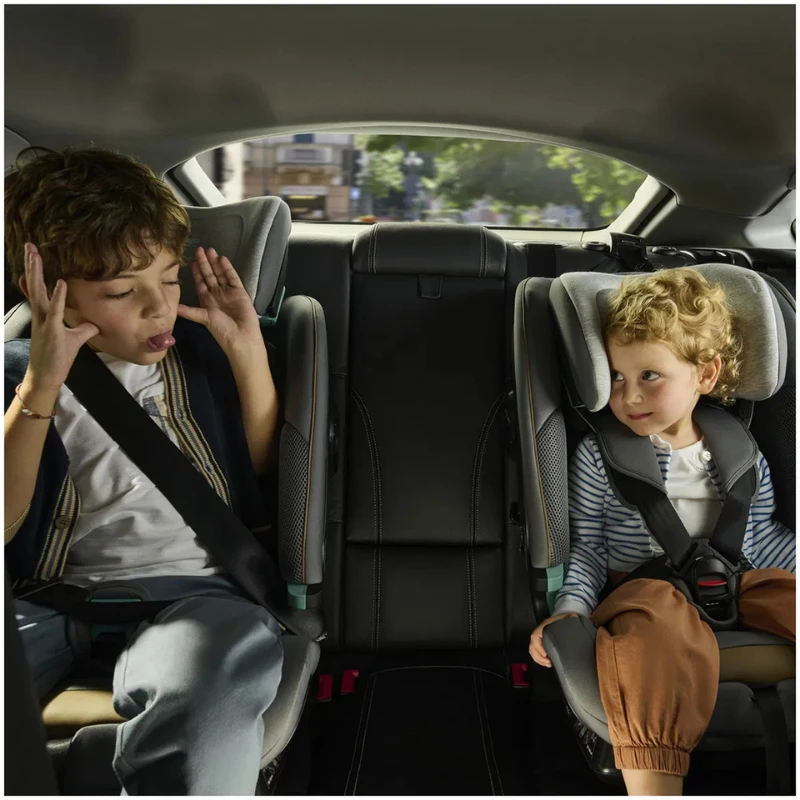 Dete je vezano sa sigurnosnim pojasom u 5 tačaka vezivanja od 40 do 105 cm, dok od 100 cm dalje koristi sigurnosni pojas vozila.