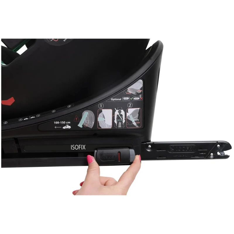 Moguća instalacija sa Isofix konektorima i Support Leg za decu od 40 do 105 cm. Od 100 cm (oko 3 godine) sedište se instalira sa sigurnosnim pojasom vozila (Isofix opcionalno).