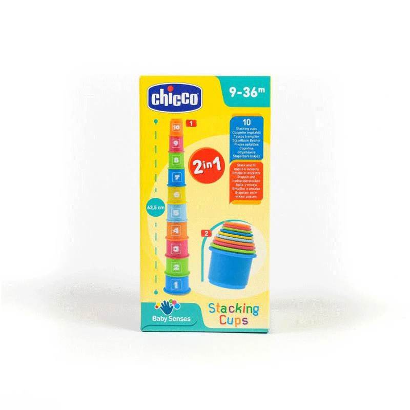 Chicco Toys Eco igračka za bebe Kupovi za slaganje predviđen je za decu od 6 meseci do 36 meseci. Chicco je jedan od vodećih brendova na svetskom tržištu proizvoda za bebe i decu i jedan je od deset najprodavanjih italijanskih brendova u svetu. Chicco je oduvek posvećivao veliku pažnju potrebama roditelja i dece u svakoj fazi njihovog rasta i razvoja. Set sadrži 5 različitih kupova za slaganje i 5 različitih oblika koji se mogu ubaciti u kupove. Kupovi su izrađeni u različitim bojama i na sebi imaju različite taktilne motive. Kupovi se mogu ređati jedan na drugi, jedan u drugi ili jedan pored drugog. Pomažu detetu da uoči odnose veće - manje i kako se te relacije međusobno mogu kombinovati, kao i načine ređanja - po horizontali ili vertikali. Eko kupovi za slaganje predstavljaju izuzetno zanimljivu igračku koja podstiče logičko razmišljanje, maštu i kreativnost. Igračka je napravljena od 80% reciklirane plastike.