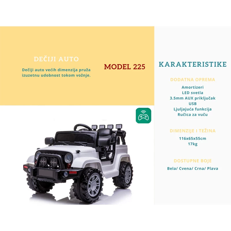 | Dečiji automobil na akumulator Model 225, Beli | |