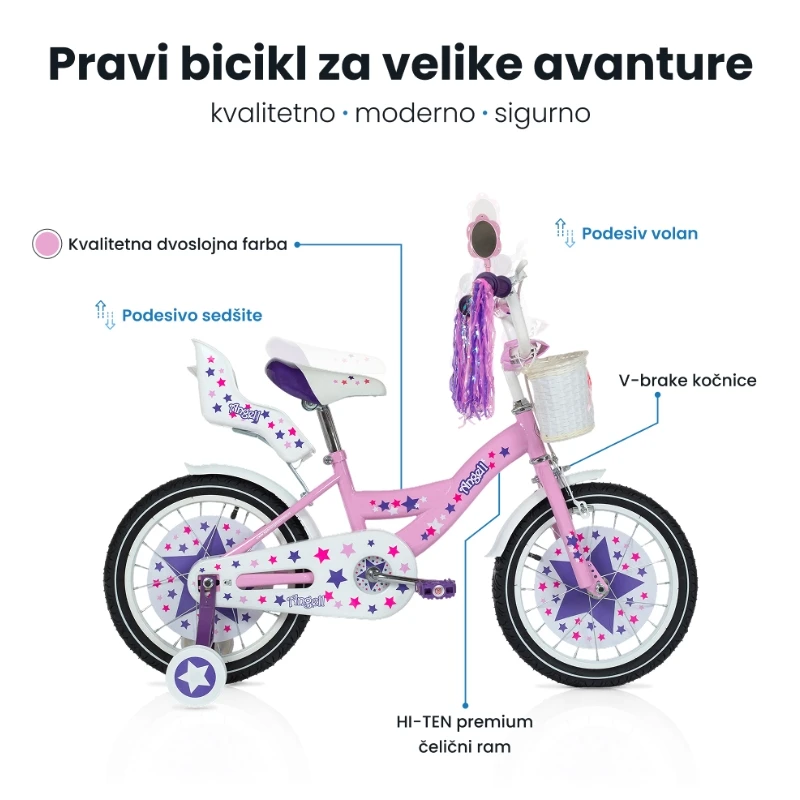 | Naziv proizvoda: | Dečiji bicikl za devojčice Angell 16" SM-16006 Roze, 3g+ |