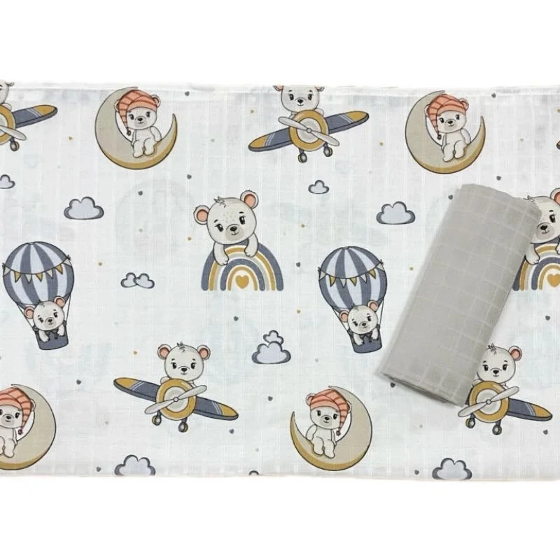 | Naziv proizvoda: | Deksi tetra pelena za bebe Meda na avionu Siva, 80 x 80 cm |