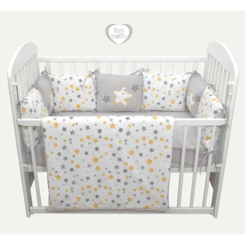 Fim Zvezdice posteljina za krevetac sa jastučićima, Siva
