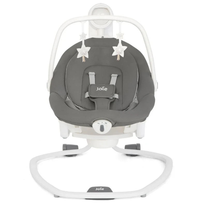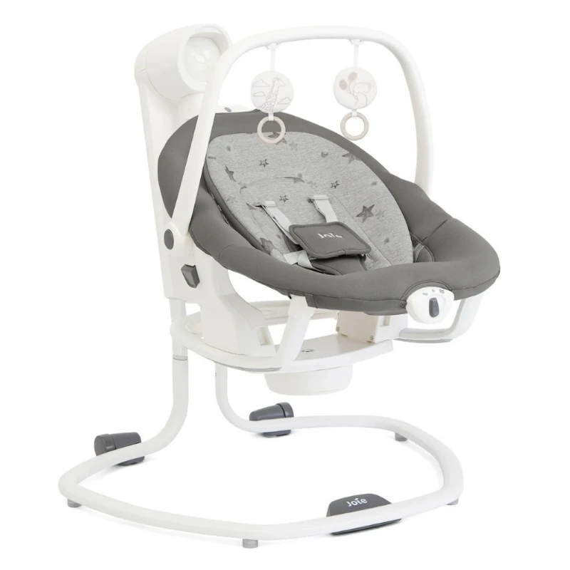 Multifunkcionalna ljuljaška Joie Sansa Grey Portrait 2 u 1, od ljuljaške do ležaljke. Predviđena za uzrast od rođenja do 9 kg. Kao ljuljaška sadrži tri različita moda ljuljanja, mogućnost okretanja ljuljaške dok je postavljena na svojoj bazi, 2 umirujuće vibracije, 3 pozicije naslona za leđa.