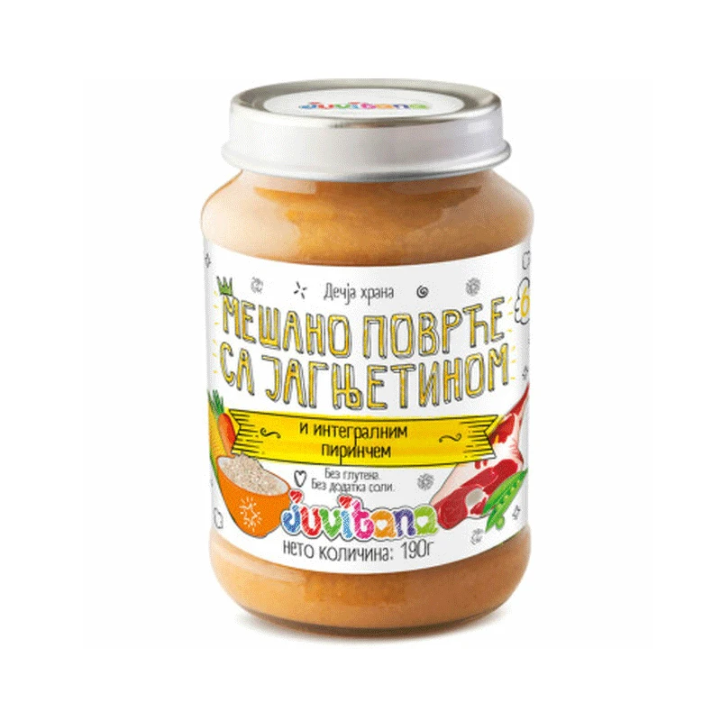 | Naziv proizvoda: | Juvitana kašica mešano povrće sa jagnjetinom i integralnim pirinčem 190g |