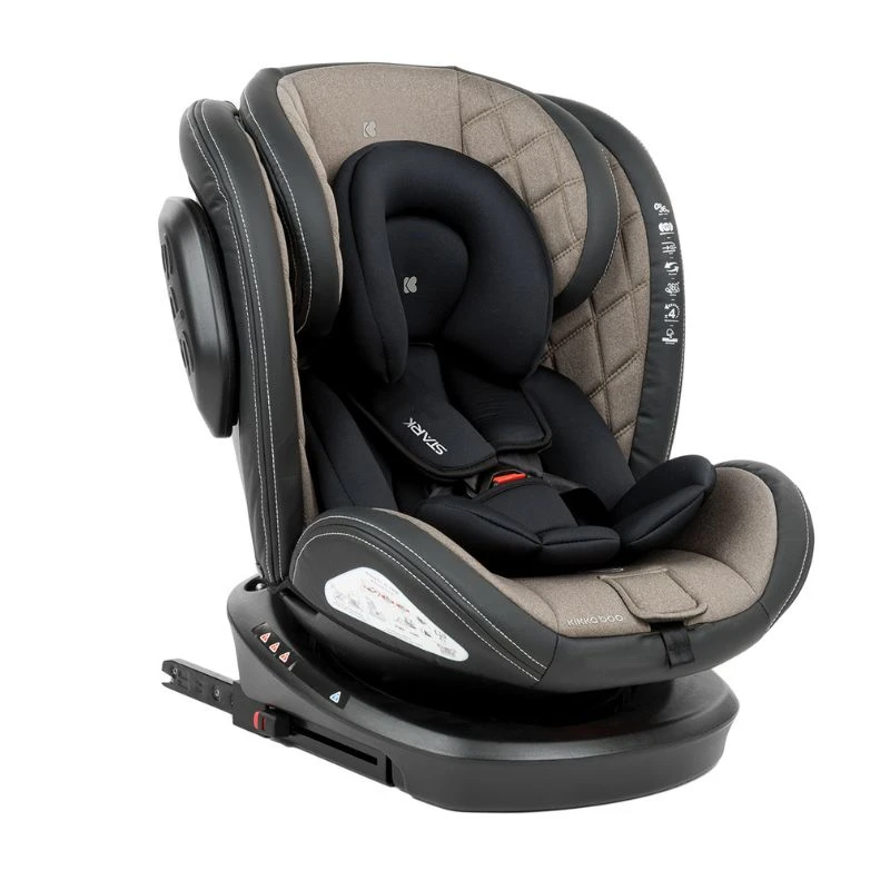Kikka Boo Twist auto sedište za decu i-Size u crnoj boji predviđen je za decu od 40 do 150cm. Autosedište ima 5 nagiba naslona i u pravcu kretanja i u pravcu suprotnom od smera kretanja. Sedišta ima rotaciju za 360 stepeni. Isofix sistem za dodatnu bezbednost i lakšu instalaciju u automobilu. Sigurnosni pojas za vezivanje u 5 tačaka sa mekanim ramenim jastučićima i štitnikom kopče. Auto sedište ima potpornu nogu.