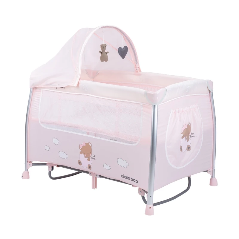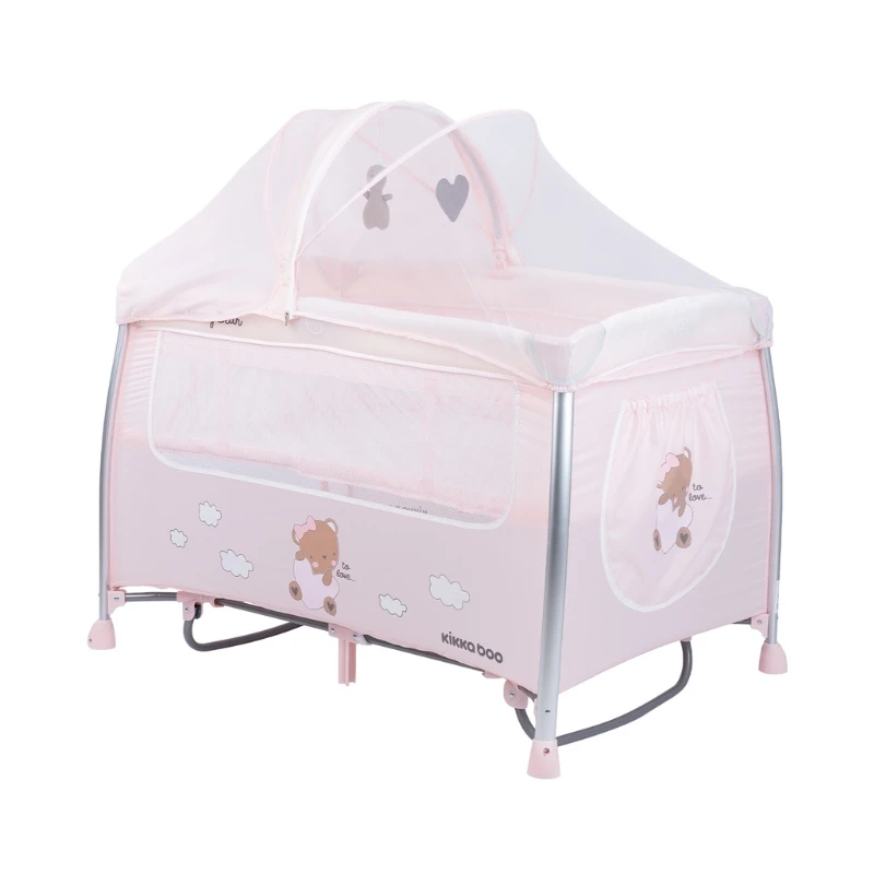 Kikka Boo prenosivi krevetac Dreamy Bear Pink 2 Nivoa