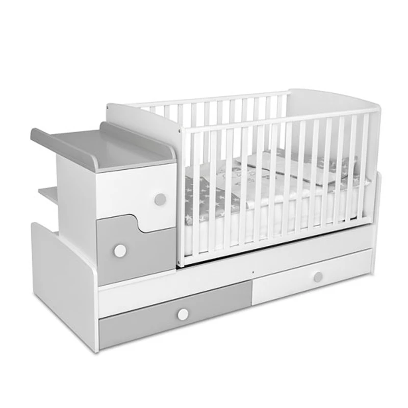 Drveni krevetac 3 u 1 Meda u beloj boji, pogodan je za bebe od rođenja pa do 10 godina. Krevetac je izrađen od kombinacije od masiva bukve, medijapana oplemenjenog pravim furnirom i čvrste iverice. Krevetac u okviru svoje komodice ima 3 fioke i u donjem delu još 2 dugačke fioke, što je sasvim dovoljno prostora za bebi stvari. Na komodici je postavljen pult za presvlačenje bebe, gde je neophodno da se postavi meka podloga za presvlačenje bebe.