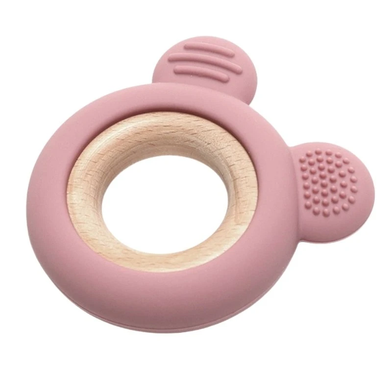 Lorelli drvena silikonska glodalica za bebe Bear, Natural Deep Pink