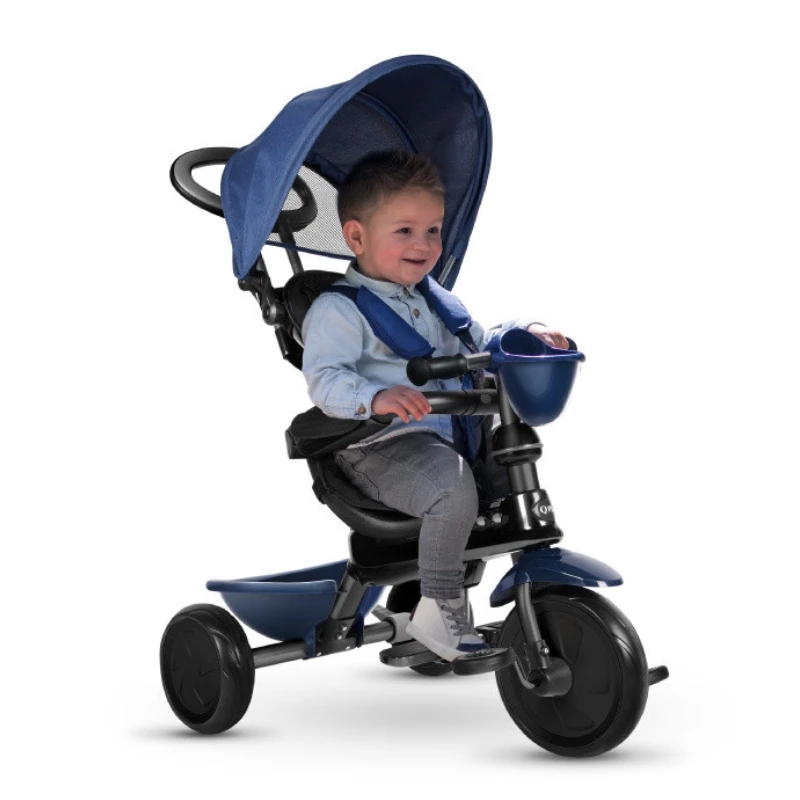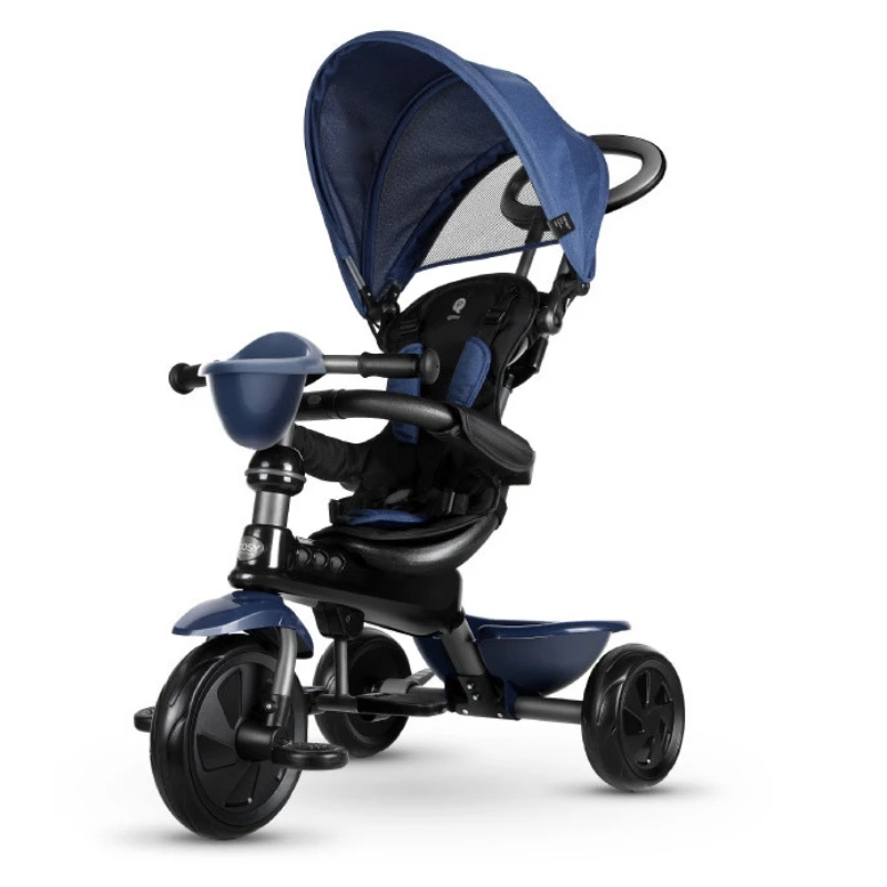 Qplay tricikl Nova Niello u crnoj boji je nadograđeni model Qplay tricikla Nova 3u1. Njegova brza i jednostavna funkcija sklapanja omogućiče vam da ga ponesete gde god zelite, zauzimajući veoma malo prostora. Sedište se može rotirati za 360 stepeni, što daje detetu mogućnost da gleda u pravcu kretanja tricikla ili ka roditelju. Poseduje veliku tendu od visokokvalitetnih montažnih tkanina i filter UV zračenja, mogućnost eliminisanja upravljača i pedala, kvalitetne EVA točkove, dupli oslonac za noge (odvojivi i fiksni).