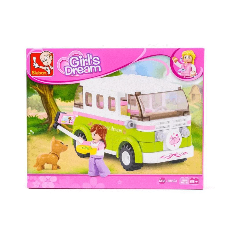 Sluban kocke dolaze u kompletima koji obrađuju različite teme. Igrajući se njima, mališani na zabavan način, kroz igru , razvijaju kreativnost i stvaralačko izražavanje. Sluban sladoledžija je interesantna i edukativna igračka koja se sastoji od 205 delova. Set sadrži sitne delove.