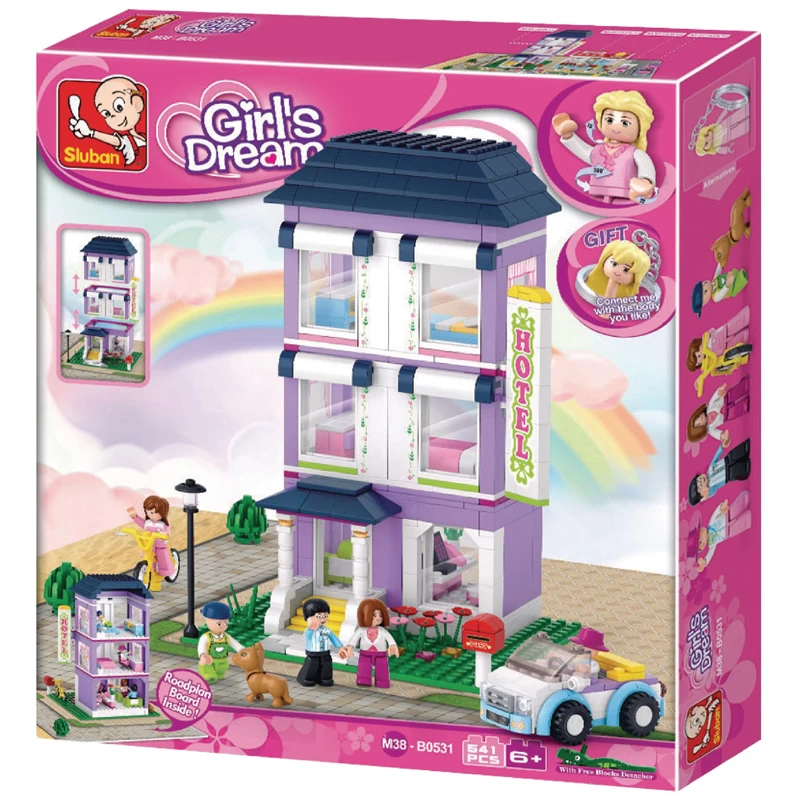 Sluban hotel je interesantna i edukativna igračka koja se sastoji od 541 dela. Set sadrži sitne delove.