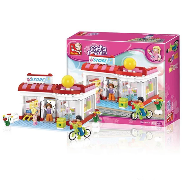 - Sluban prodavnica je interesantna i edukativna igračka koja se sastoji od 289 delova. Set sadrži sitne delove.