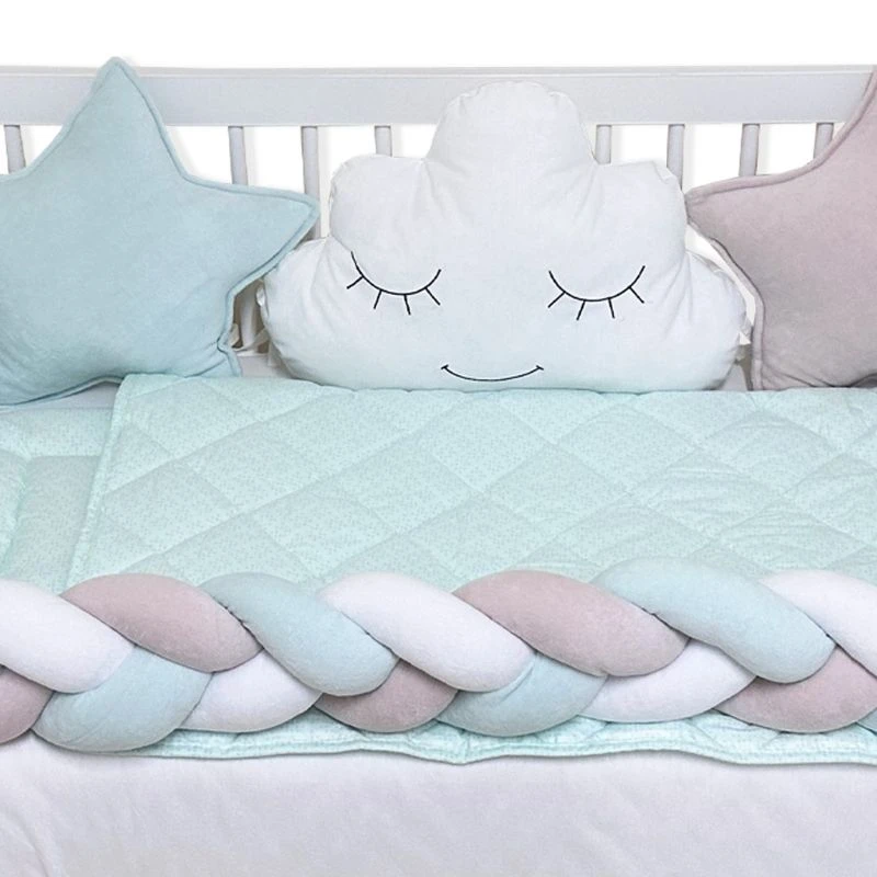Textil šarena pletenica za krevetac - divna i elegantna u roze-vanila-beloj boji, potpuni dekor i zaštita kao ogradica za Vaš krevetac ali i praktična jer je možete koristiti i kasnije za dečiji veliki krevet.
