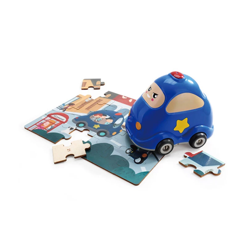 - Kada dete završi igru sa slagalicom, kroz otvor koji se nalazi na donjem delu plastične igračke POLICAJAC - može da spakuje pazle i nastavi igru uz vožnju ovog četvorotočkaša.