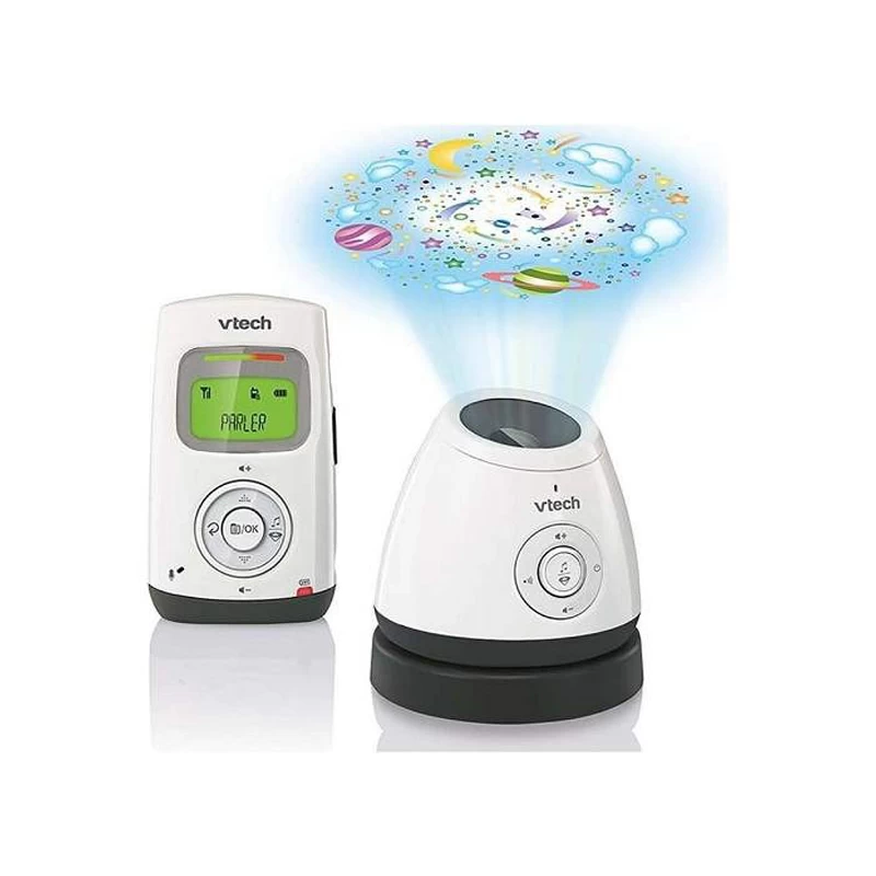 Vtech bebi alarm sa audio monitorom i projektorom ima DECT digitanlna tehnologija za sigurnu vezu i jasan zvuk bez smetnji. Bebi alarm poseduje dvosmerni interfon. Kada se čuje bebin glas na roditeljskoj jedinici mogu da se osete vibracije.