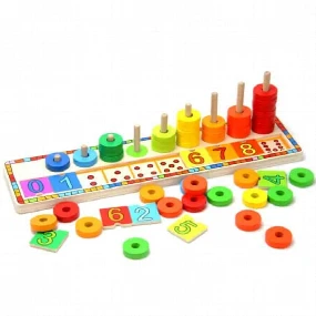 Igračka upoznaje dete sa brojevima putem vizualizacije, uz pomoć jasnih boja i definisanih elemenata – prstenova – koje dete ima zadatak da pravilno rasporedi na drvenu osnovu sa štapićima. Na osnovi su ispisane cifre brojeva, tako da ih dete vizuelno povezuje sa bojom i brojem prstenova i na taj način bolje pamti i usvaja pojam o datom broju.