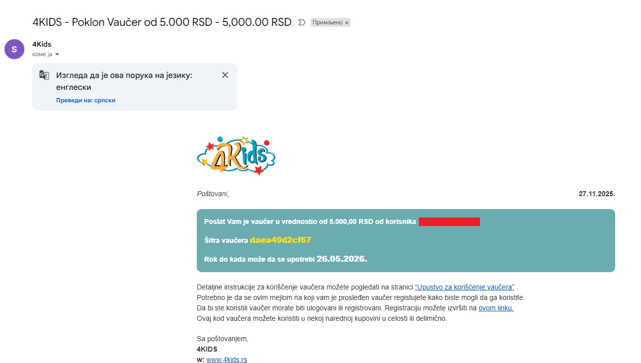 ✔️ „4Kids - Verifikovano plaćanje vaučera“